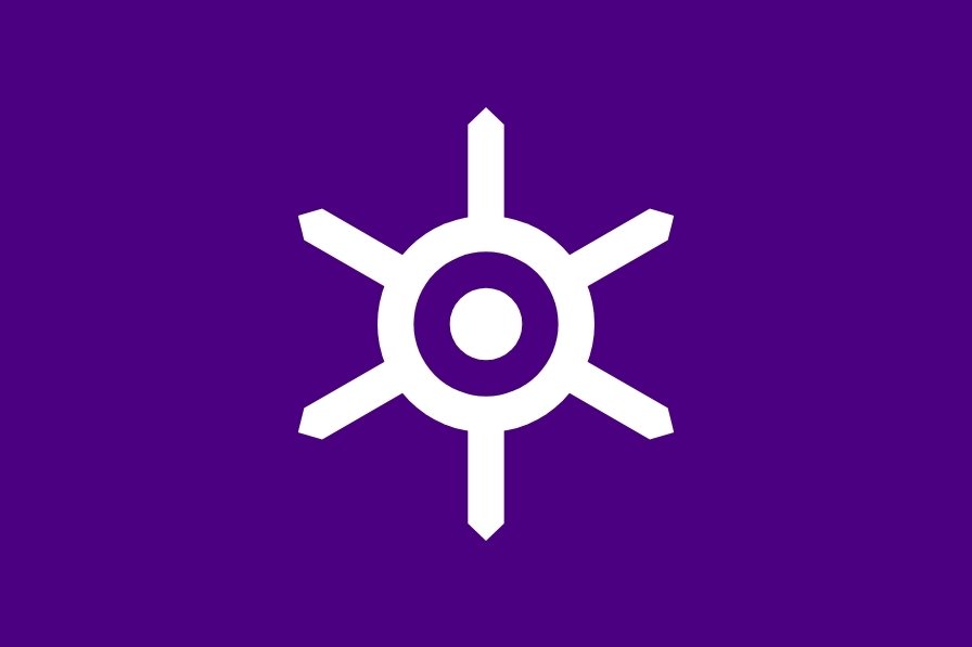 Presenta un emblema metropolitano blanco (una representación estilizada del sol) en el centro de un fondo púrpura oscuro, también conocido como púrpura Edo.