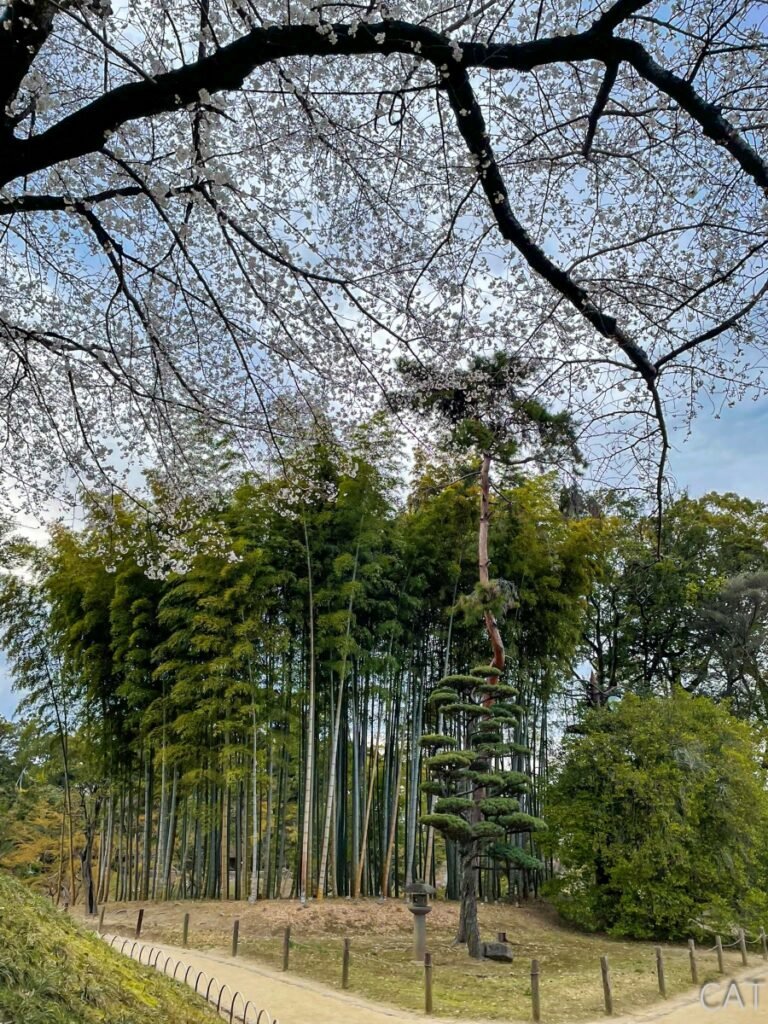 Es especialmente mágico durante la temporada de floración del cerezo — y esta vez, por fin, tuve suerte. ¡Los árboles estaban realmente en flor! Después de ver tantos “casi-sakura” en otros lugares, en este jardín parecía como si la primavera hubiese explotado en purpurina. 🥳
