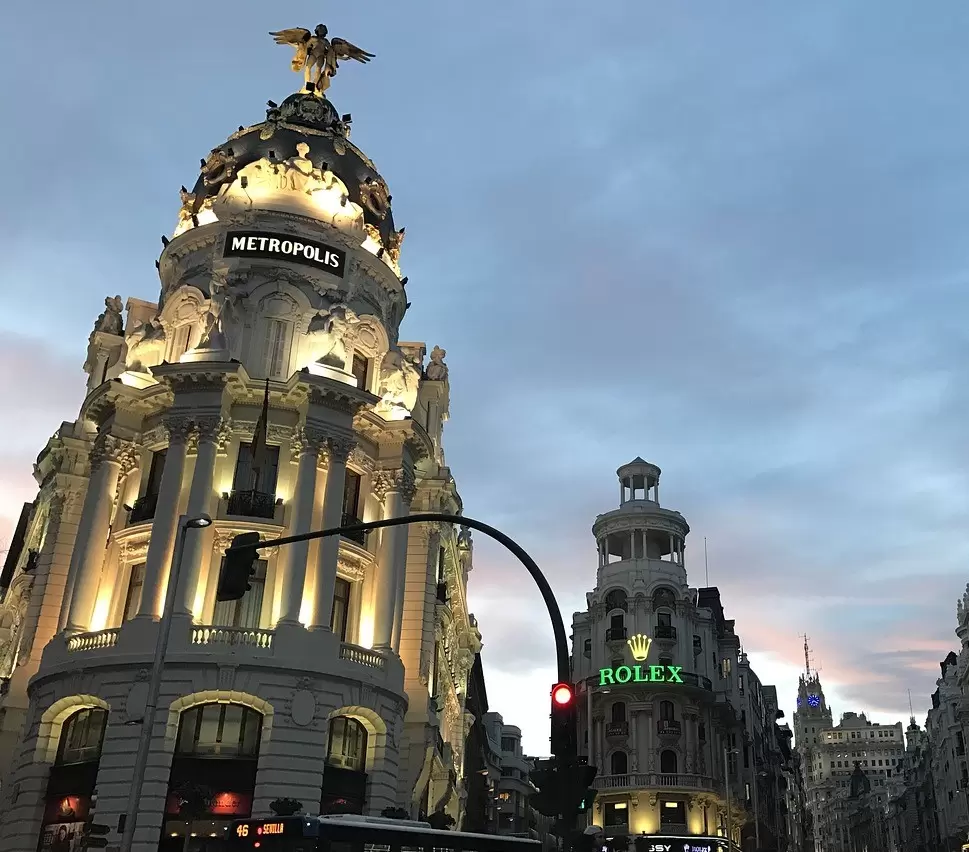 One of the most famous streets in Madrid, the Gran Vía, begins across from the Círculo de Bellas Artes. It is known as Madrid’s Broadway, which is full of cinemas, theatres, restaurants, and shops.