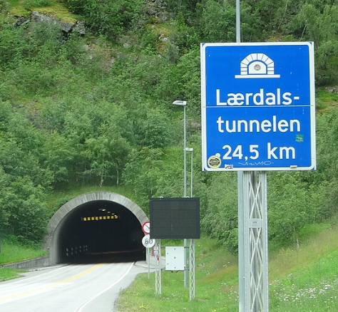 - The Lærdal Tunnel in western Norway, 24.5 km long, is the longest road tunnel in the world and connects the towns of Lærdal and Aurland.
